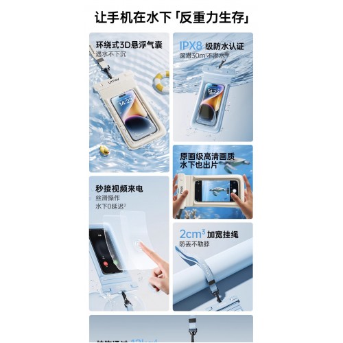 * IPX8 waterproof phone case: Protect your phone from water to 100ft, snow and dust. Perfect for swimming, fishing, rowing, skiing or other activities. Make sure this waterproof dry bag is tightly sealed before underwater using.