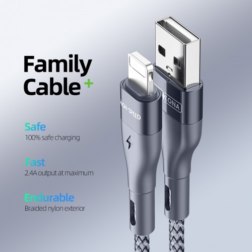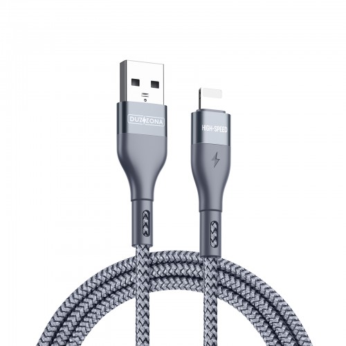 DUX DUCIS A7-02-CP USB-A to Lightning Cable 2M High-Speed 480Mbps Fast Charging 5V/2.4A Nylon Braided Grey [5-A29]
